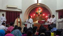 Holy Communion Services are conducted every Sunday at the Church. To accomodate the climatic vagaries of the seasons, in summer, the worship starts at 9:00 a.m. while the winter service commences at 9:30 a.m. The service is usually conducted in malayalam language. However, for the benefit of young people who are born and brought up outside Kerala, there is an english service of the same worship order being celebrated on third Sunday of every month.